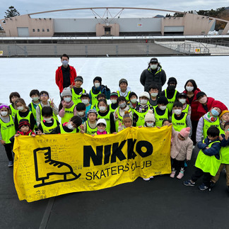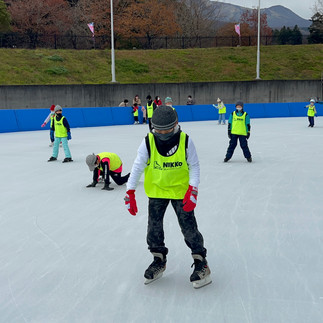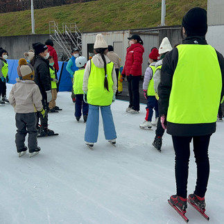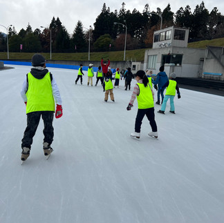 今回は曇り空の下行われました。屋外スケートリンクでは、天候によって氷のコンディションも大きく変化します。毎回変化する環境に子どもたちはさまざまな経験を得て身体的にも技術的にも成長していきます。